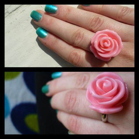 Naujas Žiedelis su akriline, šviesiai rožine rožyte.Žiedo dydis reguliuojasi.