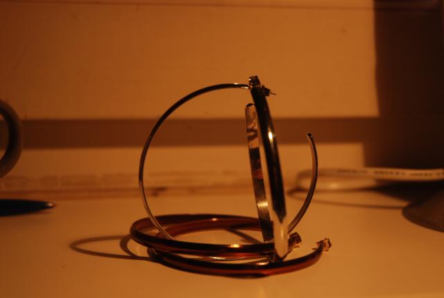 Apvalūs auskarai. Dviejų spalvų chromo ir bronziniai.Skersmuo 8cm.