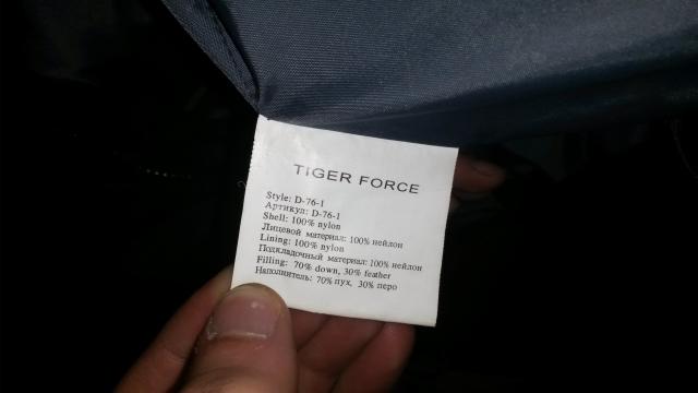 Šilta pūkinė striukė žiemai. Gamintojas TIGER Force co. Užpildas 70% pūkai, 30% plunksnos. Apsivilkta pora kartų (per trumpos rankovės). Tiklų 175 - 180 ūgiui. Kaina 160 Lt. Spalva - juoda