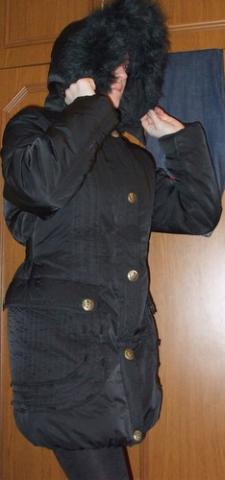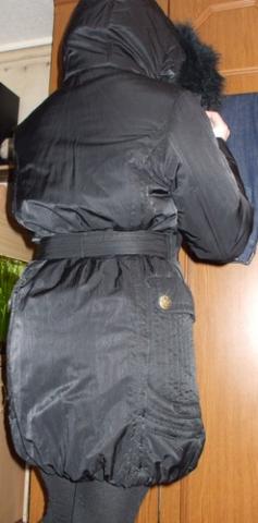 Vieną kart vilkėta, be galo šilta su didžiuliu gobtuvu. Apačia įdomiai paraukta su guma, ant liemens diržas, kuris nesireguliuoja, bet gražiai įliemenuoja. Kaina su siuntimu.
