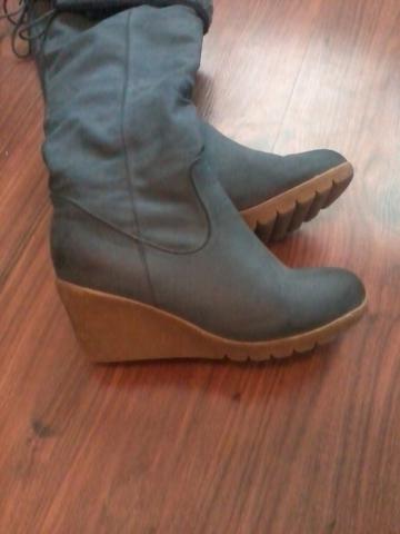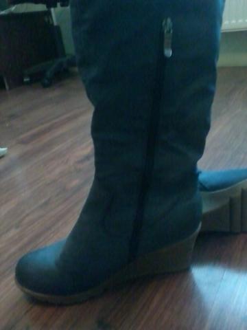 Mėlyni žieminiai batai su platforma. Platformos ilgis 6cm, šone yra užtrauktukas, paskutinėje nuotraukoje yra defektas, nešioti apie 1 mėnesį. Šilti tinka prie bet kurių rūbų. Žiemą neslysta, nes padas banguotas. Dydis 41