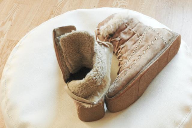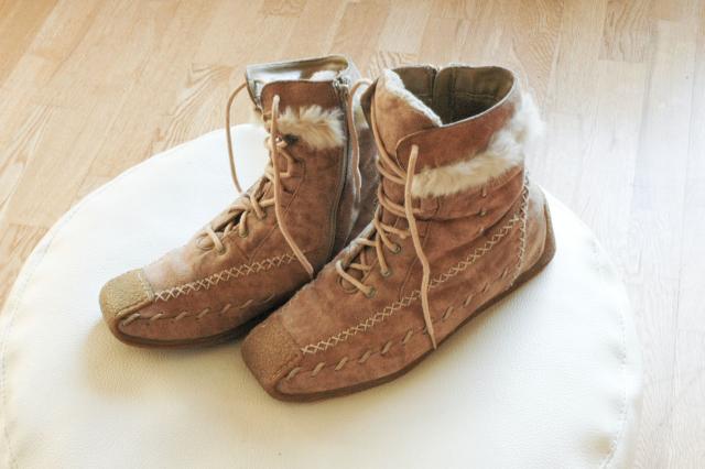 Žieminiai, labai nedaug nešioti, šilti su dirbtiniu kailiuku, medžiaginiai - verstos odos imitacija, lygus padas. Malonūs ir įdomūs. Tinka tik šaltai sausam orui, nes yra gana laidūs drėgmei, per balas netinka lakstyti, raišteliai originalūs, tačiau vietose kiek iširę, tai greičiausiai reiktų pasikeisti. Pardavimui pirmenybė, taip pat mainyčiau į vertingus daiktus. :)