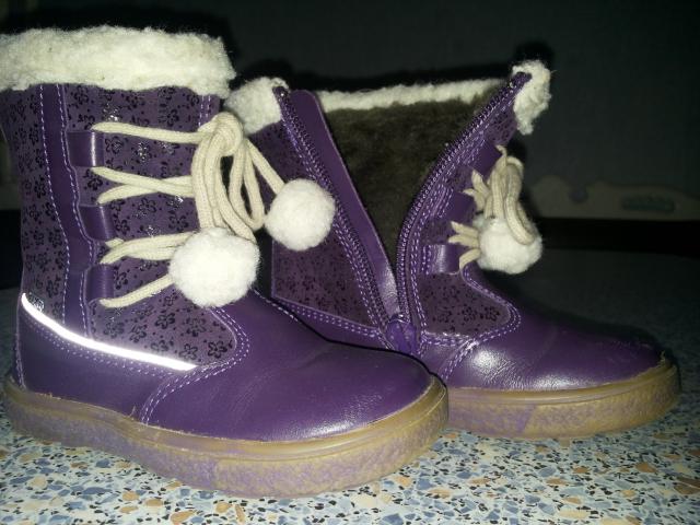 Odiniai batukai, beveik nauji. Viduje natūralus kailis. Todėl šilti ir lengvučiai. Batukų spalva: tamsiai violetinė. Batukų dydis: 23