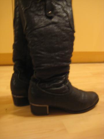 Išorė-oda, vidus-natūralus kailis. Batai ant neaukšto kulniuko. Stilius-kaubojiškas. Tikrai nesušalsit su tokiais batais : ) Pirkti Anglijoje.