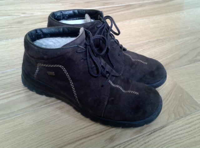Žieminiai rieker firmos batai. Bato viduje natūrali vilna, todėl batai labai šilti. Vidpadis - 26cm.