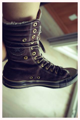 Visiškai nauji, ilgi, rudos spalvos, žieminiai converse (viduje yra kailis). Galima nešioti ir atsilenkus