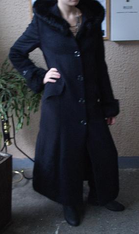 Parašytas S (8) dydis, bet labiausiai tiktų žmogui nešiojančiam M-L dydį. Nuotrauka ant 171 ūgio. Ant kapišono ir rankogalių naturalus kailiukas. Sagos juodos. Dėvėjau tik porą kartų, bet man jis visgi per didelis. Pirkau už 600 Lt. 40% medvilnė 40% alpaca 20% baby alpaca