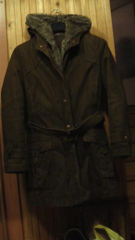 Žieminis palčiukas iki užpakalio:) rudos spalvos. Labai labai šilas, su diržiuku per liemenį. Su kapišonu. šiltas vidus išsisega (užtrauktuko pagalba) ir palčiukas transformuojasi į pavasarinį palčiuką!:) dydis - M/L, susiveržia per liemenį diržu.