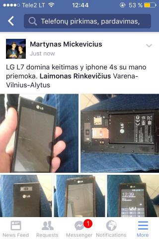 Ieškau pirkti Apple Iphone 4s. Siūlau savo Lg L7 skiles, bet naudotis netrugdo. su mano priemoka.