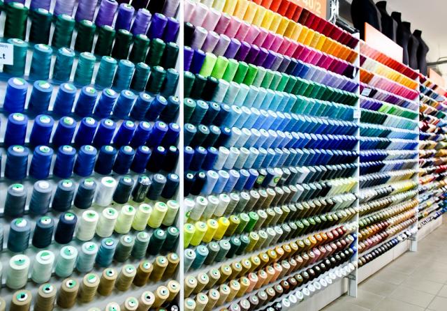 Įvairių spalvų siuvimo siūlų. Geriau - didelės ritės.