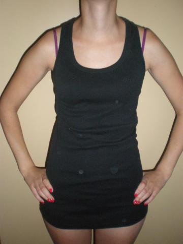 trys labai panasios juodos maikutes.skiriasi ilgiai.