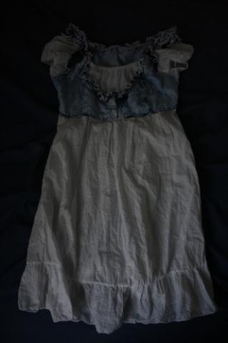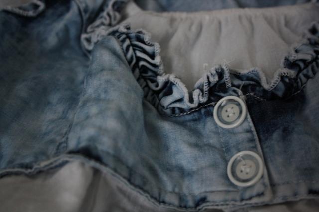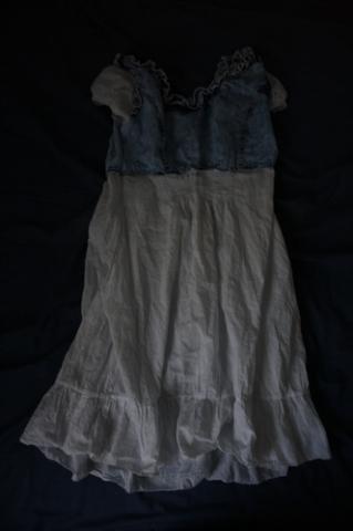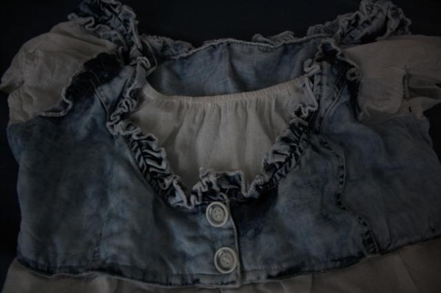 Balta ilga moteriška palaidinė su džinsinės liemenės imitacija