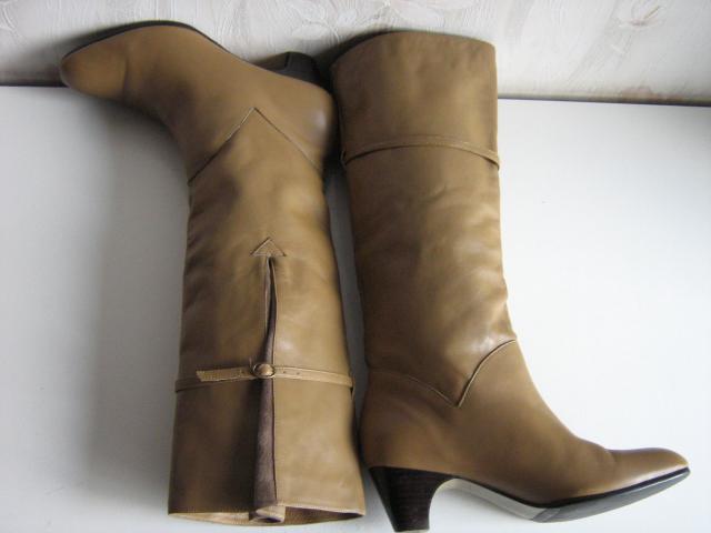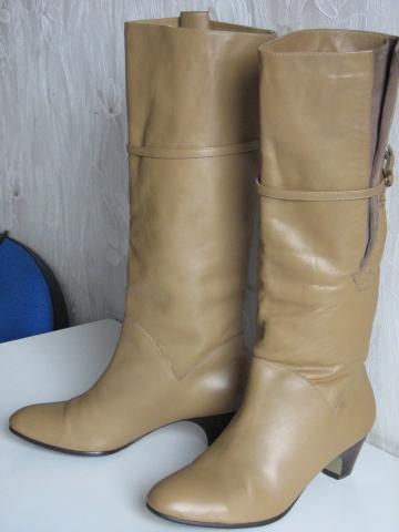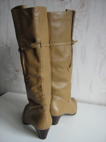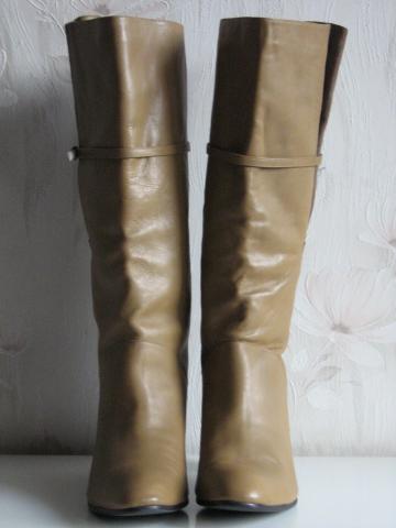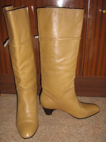 Ilgaauliai šviesiai rudi odiniai batai, 37 dydis, batų aulas siekia kelius. Tinka ir platesniai kojai, kadangi šone yra įsiuva ir prasiplatina aulas storiausioje vietoje. Batai be defektų- nauji, nedėvėti. Tinka įvairiom progom ir sezonams.Kaina: 65 lt.