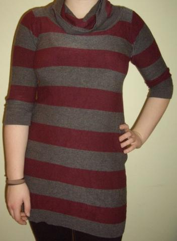 Dryžuotas (pilka/vyšniava) megztinis. CUBUS firma, M dydis