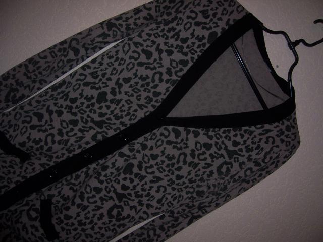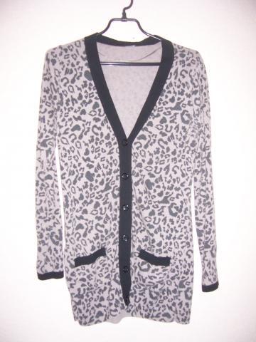 Ilgas rudas, gepardo rašto užsegiojamas megztukas