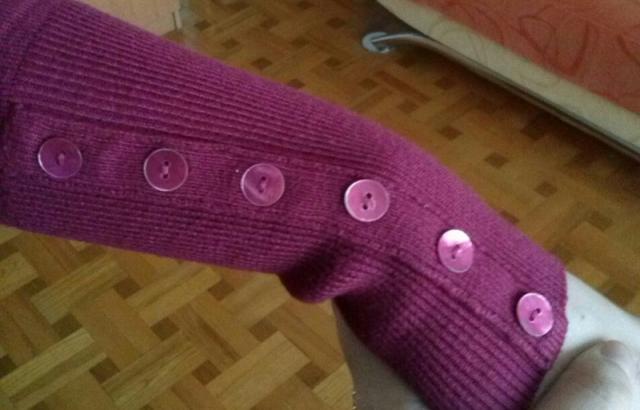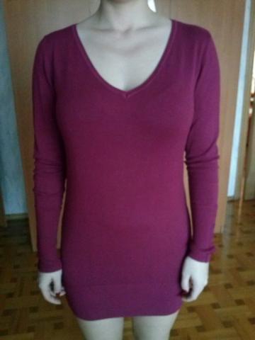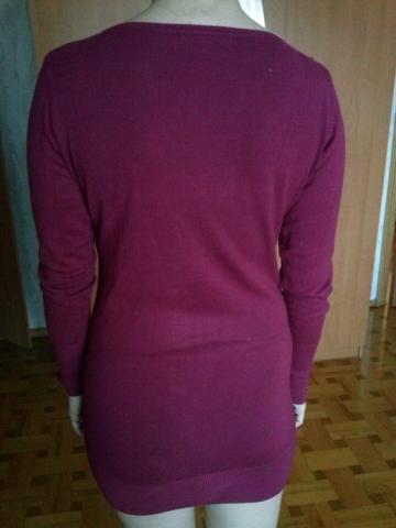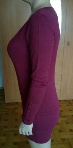 Tamsiai rožinės spalvos ilgas megztukas, gerai tamposi, apačia sutraukta. Rankovės apačios sutrauktos su sagutėmis (matosi nuotraukoje) Ilgis-75cm Rankovės ilgis-65cm