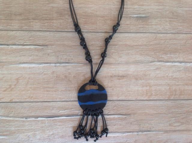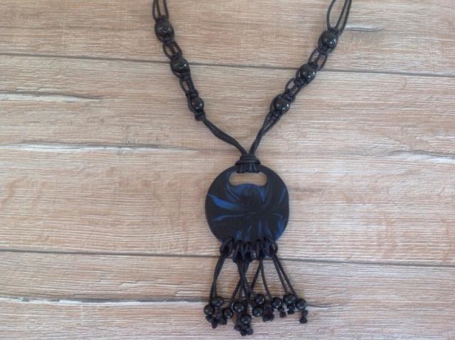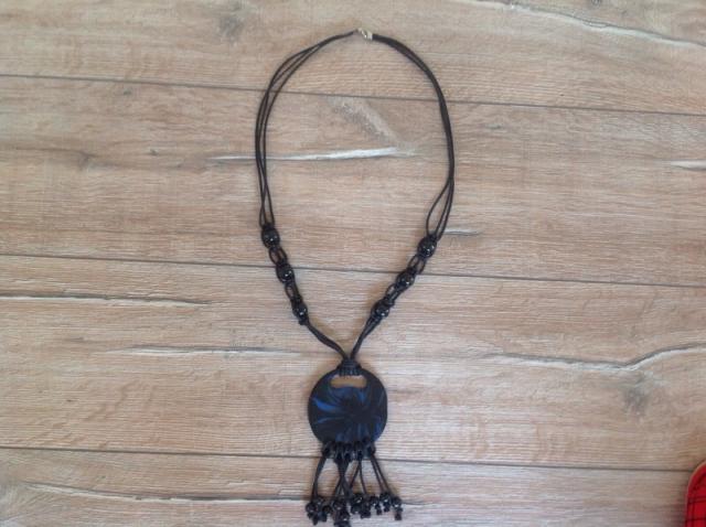 Ranku darbo,ilgas-visas ilgis 59cm,vintage kaklo papuosalas.Pirktas Belgijoj,unikaliu dirbiniu krautuvelej.Rutuliukai-mediniai,dazyti ir lakuoti.Apskritimo puses-skirtingu rastu,matosi foto,jo skersmuo-8cm.Galima trumpinti kiek norit,tiesiog uz plauku surisus mazgeli. Kaune susitinku
