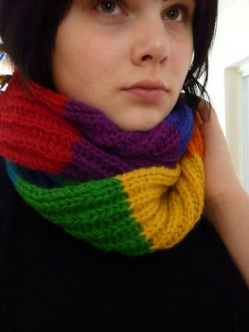 Ilgas, šiltas ir labai spalvotas šalikas.