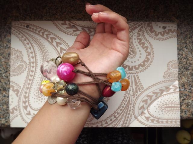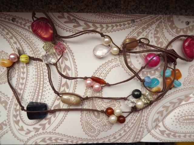 Ilgi karoliai. Labai gražu ir ant rankos ir ant kaklo.