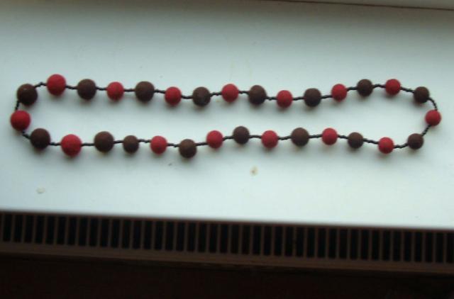 tamsiai rudos, bordinės ir juodos spalvų. gražūs labai.. karoliukai didėja..