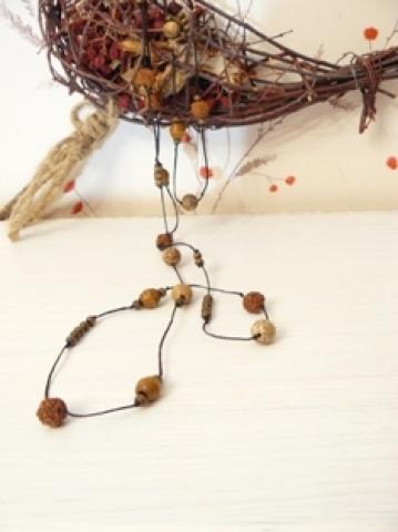 Iš medinių karoliukų ir tropinių augalų sėklų. Vertė 15 Lt
