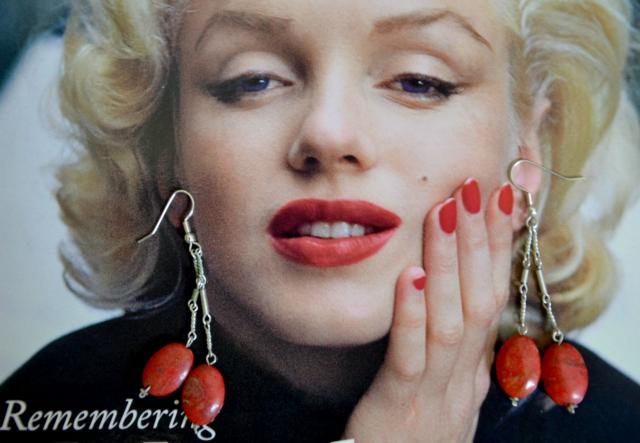 Raudoni ilgi auskariukai, rankų darbo, be defektų