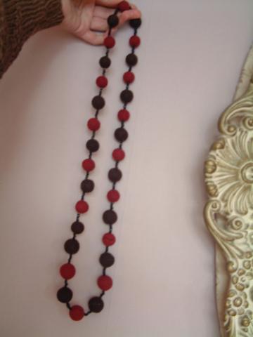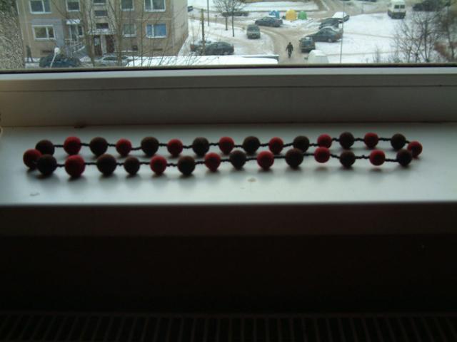 veltinis - bordinė ir tamsiai ruda, tarp jų maži juodi rutuliukai baigiasi tarp krūtinės ir bambos maždaug. galima 2 kartus užsvynioti