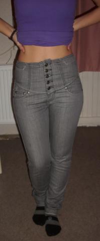 Ilgo liemens pilkos kelnes.Kelnes nera cigaretes formos, jos tiesios. Labai graziai priglunda ir yra patogios.Kelniu ilgis nuo klyno 83cm. Liemuo 70cm,tamposi.