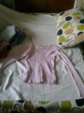 Megztukas su V formos kaklu, ilgom rankovėm, maloniai priglunda prie kūno