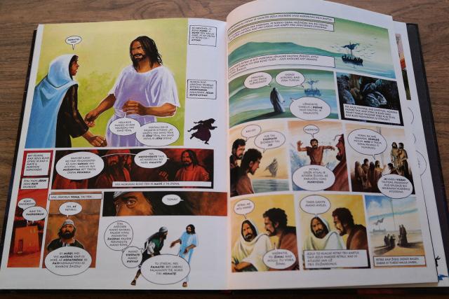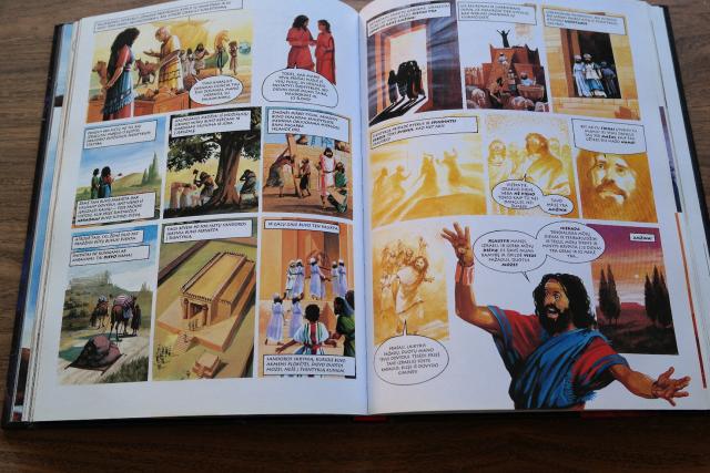Komikso stiliaus Biblijos pasakojimai vaikams ir paaugliams. 2000 m. leidimo, 21x29 formato, 130 puslapių, kietu viršeliu, nauja. Siunčiu į kitus miestus Jums patogiu būdu, gavėjui apmokėjus išlaidas.