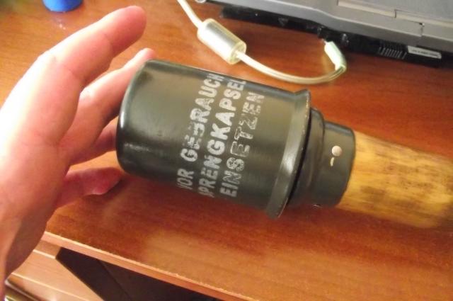 Medinė imitacinė granata, tokias naudojo vokiečiai per WWII.