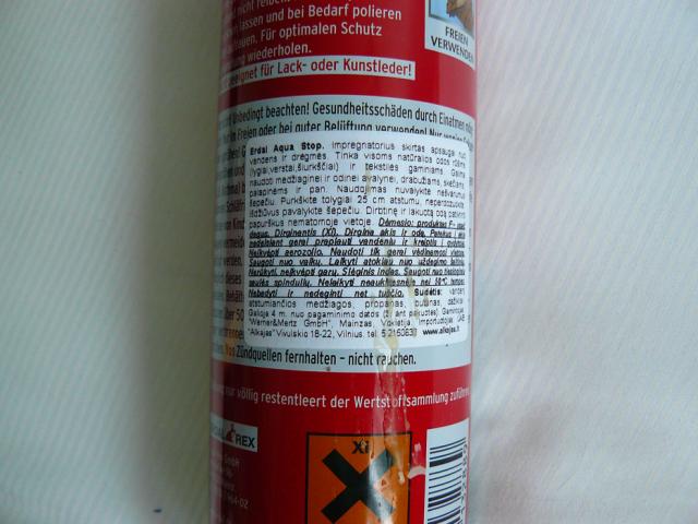 Naudojau tik vieną kartą supurkšti batus. Pakuotė aptiškėjus vašku, visa kita gerai. Paštu nesiųsiu šio produkto. Impregnatorius skirtas apsaugai nuo vandens ir drėgmės. Tinka batams ir drabužiams.
