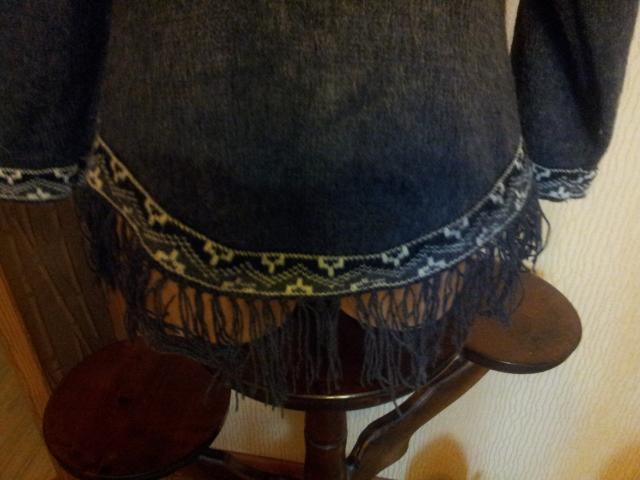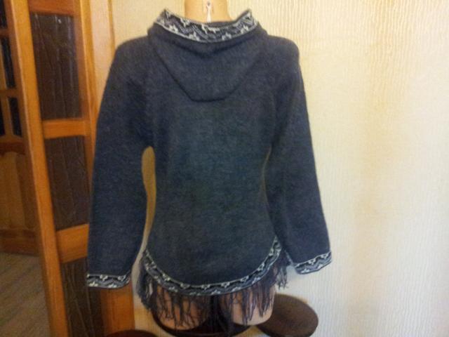 Siltas megztukas su kapisonu. Tinka S ar SM dydziui. Tamprus, sunku ismatuoti. Megztas be siuliu (isskyrus sonuose), rankovytes ilgiskazkur 62 cm, bendras ilgis 55 cm.