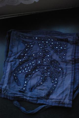 Medžiaginė rankinė, su kupranugariu, indiška. medžiagos dažai po skalbimo kiek pablukę keliose vietose (žr. 3foto), tačiau jos dizainui nerėžia akies :)