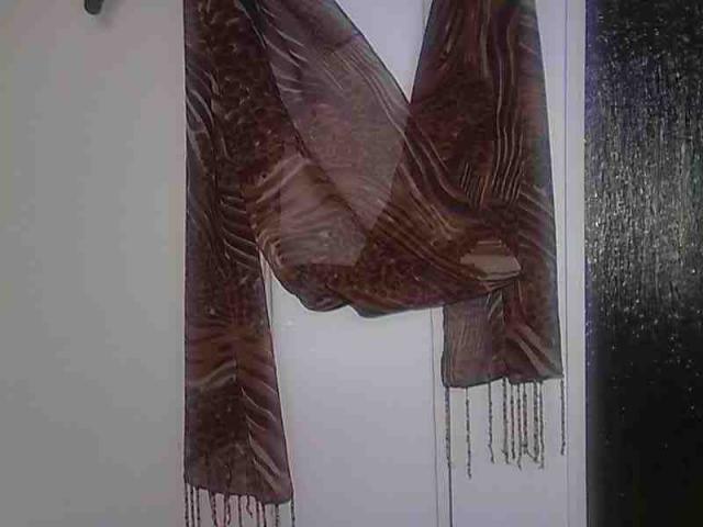 Indiskas salikelis , tigro rastu motyvai. Puostas kutais is bizuteriniu karoliuku. Spalva ruda.