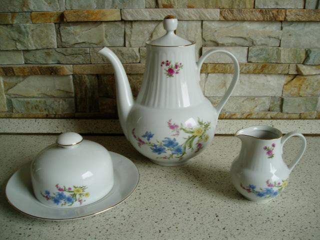 Indų rinkinys:arbatinukas,sviestinė ir indelis pienui/grietinėlei
