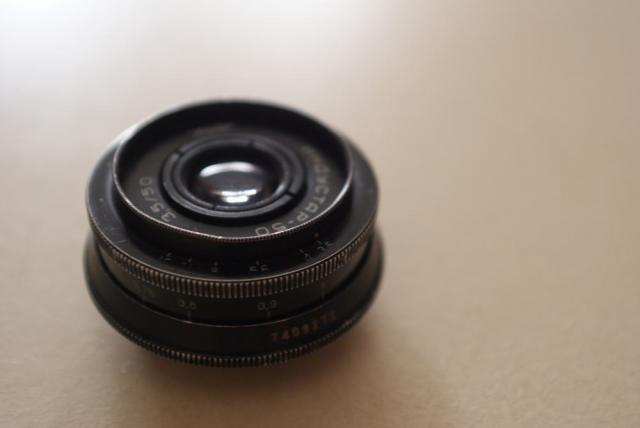 M39 sriegio objektyvas Industar 50mm, f/3.5 (švariai slankioja, nebloga būklė, stiklai švarūs).