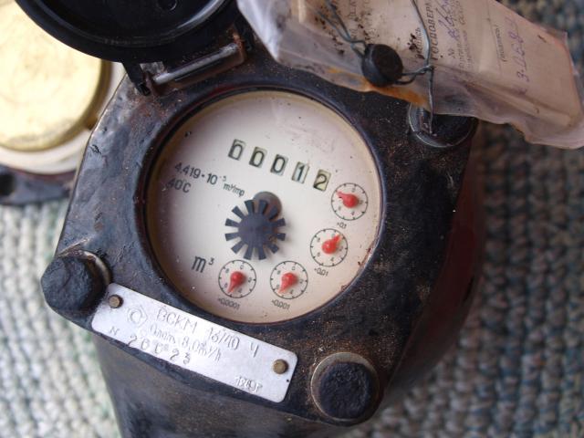 Senas galingas sovietinis šalto vandens skaitliukas. Skirtas stambesniam vartotojui. Nenaudotas, pridedamas dar vienas keičiamas skaičiavimo mechanizmas.