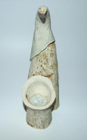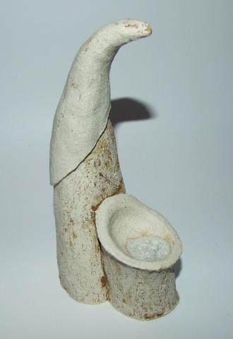 Rankų darbo vienetinė, dekoratyvinė dekoracija iš šamotinio molio. Aukštis apie 15 cm.