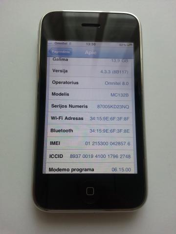 Parduodu Iphone 3GS 16gb, softas 4.3.3 , jailbreak'intas,priima visas SIM, stovis geras, galinis dangtukas turi iskilima ties krovimo lizdu(visu 3g/3gs iphone bėda). Siunčiu paštu.