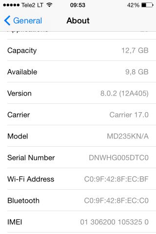 Iphone 4s 16gb neverlock Parduodu arba keičiu iphone 4s 16gb. Galinis dangtelis 10/10 visada buvo su deklu. Priekinis stiklas 9/10 yra smulkus irezimas, sonai 8/10 pasideveje nuo deklo. Domina keitimas y SONY telefona. Komplekte orginalus pakrovejas. iCloud nuimsiu vietoje pats. iki 18h tik SMS. Galiu siusti y kitus miestus + pašto išlaidos. info apie telefona: Serial Number: DNWHG005DTC0 Initial Activation Policy ID: 45 MEID: Activation Policy Description: Denmark Telia (TeliaSonera). IMEI: