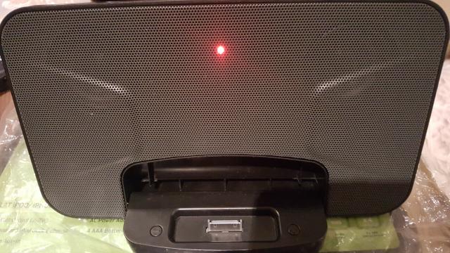 Būklė kaip naujos, puikiai veikianti. Maitinimas arba nuo 4 vnt AAA tipo elementų, arba nuo blokelio 5V. Galėčiau pritaikyti ir blokelį. Yra AUX in įvestis, todėl galima pajungti bet kokį telefoną arba mp3 grotuvą. Yra mygtukai garsui reguliuoti.