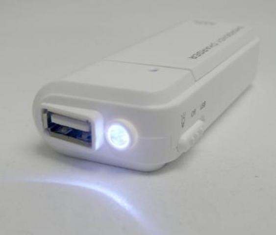 Kraunasi is bateriju (dedasi dvi AA). Naujas. Yra USB lizdas. Su zibintuveliu.:) Galiu atsiusti pastu.