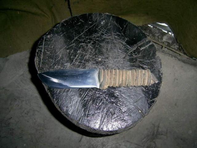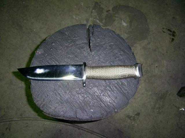 Puikus isgyvenimo peilis ,be maksciu.Nerudijancio plienu uzgrudintas iki 50 vienetu.tinkamas svaidymui.kiti peiliai is zaliavos 60G uzgrudinti iki45vnt ir 40H13 95H18 uzgrudinti iki 56-58vienetu