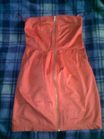 labai grazi tinkanti vasarai suknyte, be sleikuciu, su kisenytemis, sios vasaros topas !! ryskiai persikines spalvos, 10 dydis, buvau uzsidejusi 1 karta, tad praktiskai nauja :) parvesta ir anglijos :)