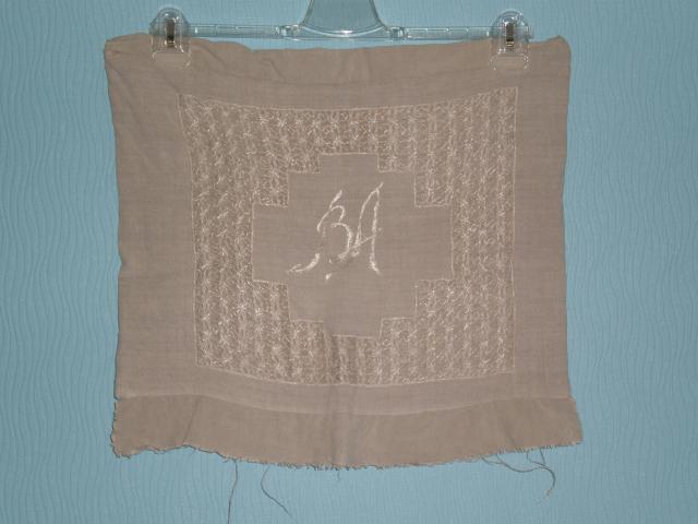 Issiuvinetas pagalves uzvalkalas su raidemis ,,b ir a''