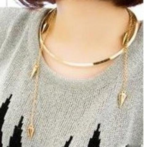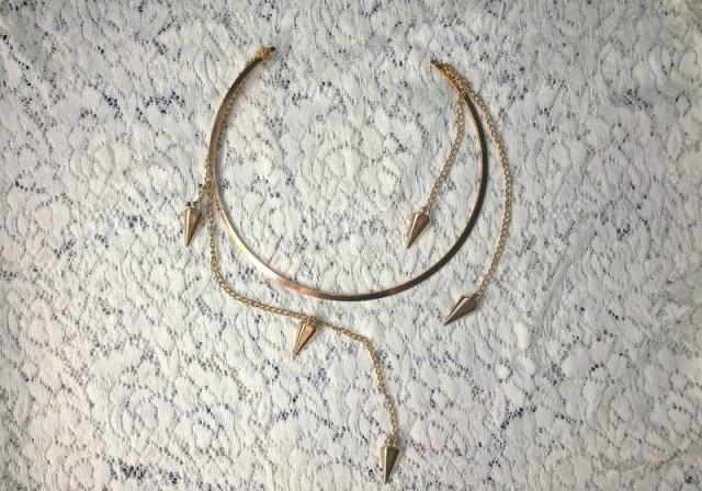 Išskirtinio modelio metalinis kaklo papuošalas su grandinėlėmis ir spygliukais