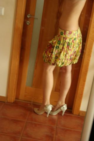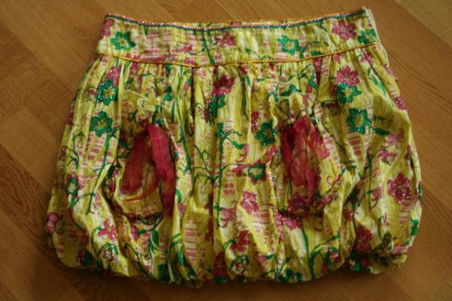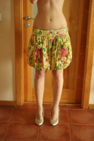 Smagus ir žaismingas vasariškas M dydžio sijonukas, nuotraukoje ant S dydžio. Išsimainiau šį sijonuką, tačiau taip ir neužsidėjau. Liemuo 40 сm., ilgis 40 cm. Ties viduriu užtrauktukas truputį sunkiai segasi, todėl reikia segti lėtai.