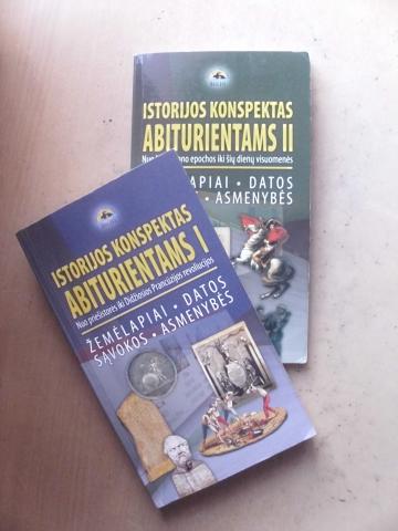 Dvi konspektų knygelės, labai pravertusios besiruošiant egzaminams. Yra beveik visi reikalingi žemėlapiai, asmenybės, sąvokos, trumpi įvykių aprašymai. Tikras išsigelbėjimas mokiniui dar neturinčiam bendro suvokimo apie vykusius įvykius. Pati mokiausi naudodasi jomis, egzamina išlaikiau 97. Būklė tikrai gera, išlaikytos.