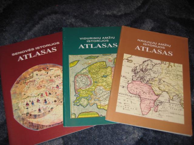 7kl senoves istorijos atlasas, 8kl viduriniu a. istorijos atlasas;senoves, viduramziu, naujuju amziu istorijos atlasai; 7kl pasaulio, 8kl europos, 9kl lietuvos geografijos santraukos ir viduramziu istorijos atlasas